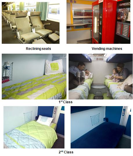 • 一等車廂和二等車廂均有女士臥鋪包廂(或女士攜帶兒童旅行)。請在Euronet上「偏好」一欄中選擇「女士包廂」。